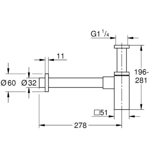 Bản vẽ kỹ thuật của ống thải bầu Grohe 40564000