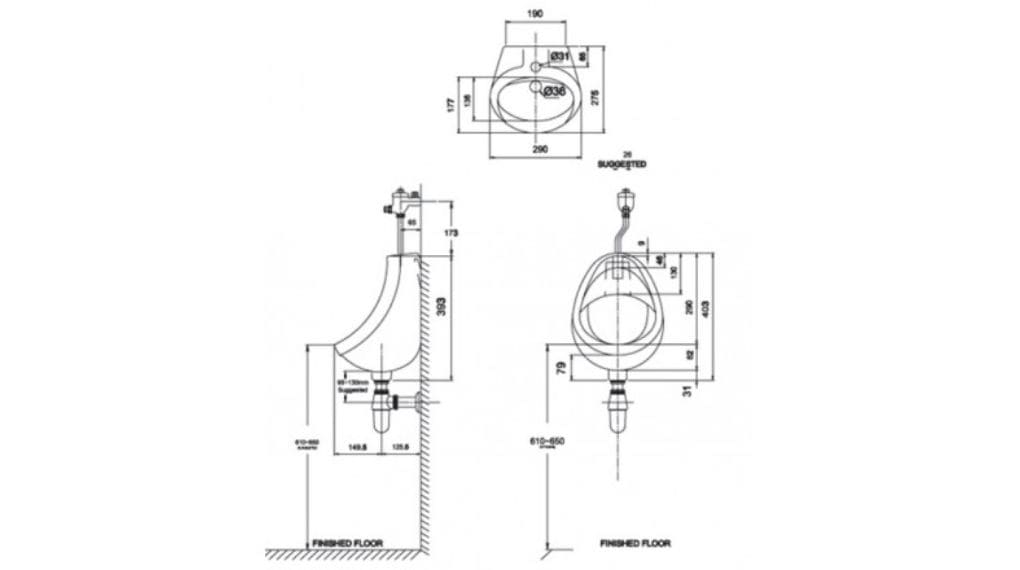 Bản vẽ kĩ thuật về Bồn Tiểu Nam American Standard VF-0414